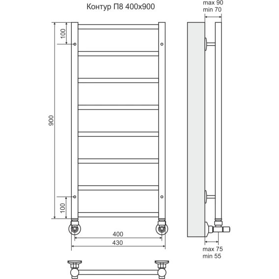 Полотенцесушитель водяной 900x430 подключение нижнее Terminus Контур П8