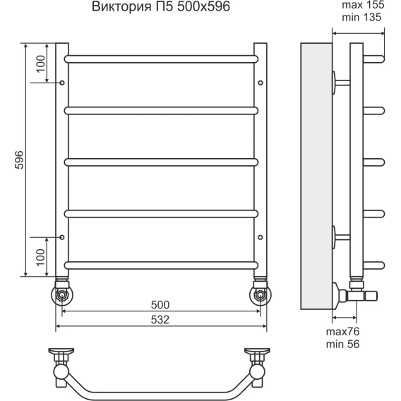 Полотенцесушитель водяной 596x532 подключение нижнее Terminus Виктория П5