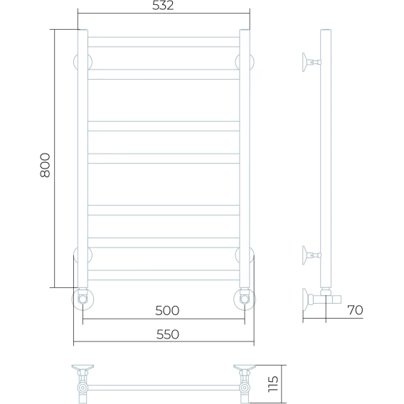 Полотенцесушитель водяной 800x550 Larusso Кватро П7 4670078535764