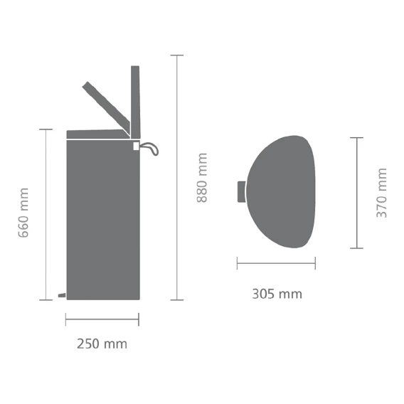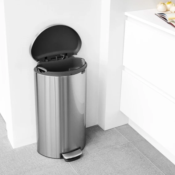 Экономия места – бак удобно устанавливается вплотную к стене или кухонному шкафу.Бесшумное закрывание и мягкий ход педали.При открывании крышка не касается стены.При открывании вручную крышка фиксируется в открытом положении.Удобная очистка – съемное внутреннее ведро из пластика со складными захватами.Удобная смена мешков для мусора – фиксации внутреннего ведра в «поднятом» положении.Бак удобно перемещать – гибкая ручка для переноски.Предохранение пола от повреждений – пластиковое защитное основание.Покрытие с защитой от отпечатков пальцев (FPP).Всегда опрятный вид – в комплекте идеально подходящие по размеру мешки для мусора PerfectFit (размер G).