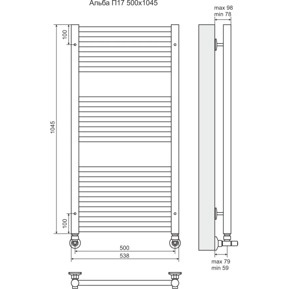 Полотенцесушитель водяной 1045x538 мм подключение нижнее Terminus Альба П17