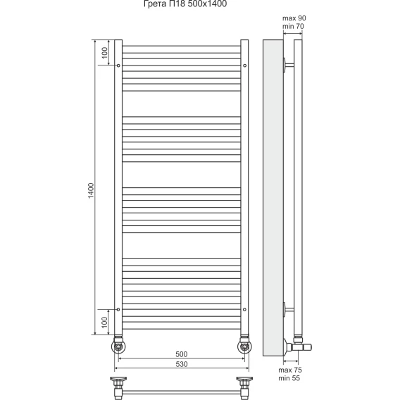 Полотенцесушитель водяной Grota Classic 4607118218974 1200x300, хром
