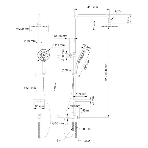 Душевой шланг, Душевая лейка, Держатель для душевой лейки, Верхний душ, Кронштейн, Мыльница, Штанга душевая