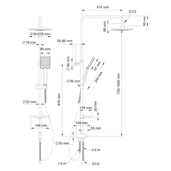 Душевая стойка 218 мм Swedbe Calypso 5065