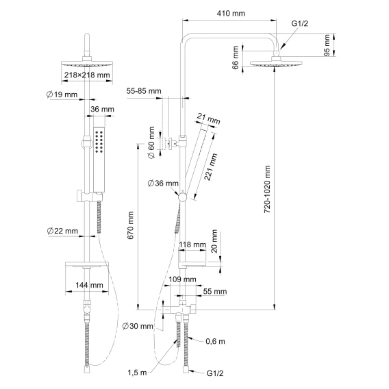 Душевая стойка 218 мм Swedbe Calypso 5065