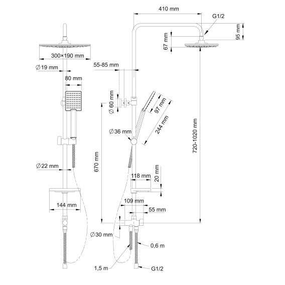 Душевой шланг, Душевая лейка, Держатель для душевой лейки, Верхний душ, Кронштейн, Мыльница, Штанга душевая