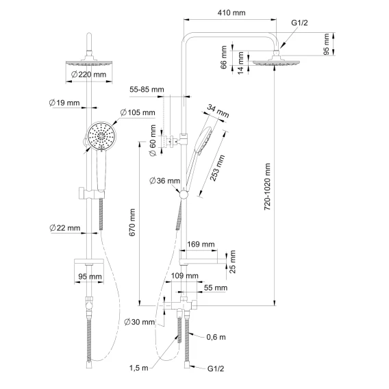 Душевой шланг, Душевая лейка, Держатель для душевой лейки, Верхний душ, Кронштейн, Мыльница, Штанга душевая