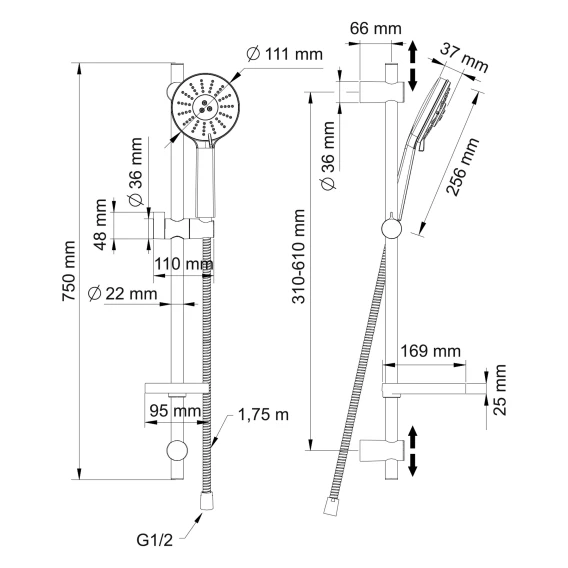 Душевой шланг, Душевая лейка, Держатель для душевой лейки, Мыльница, Штанга душевая