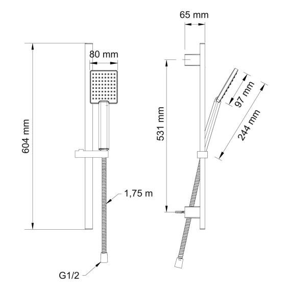 Душевой шланг, Душевая лейка, Держатель для душевой лейки, Штанга душевая