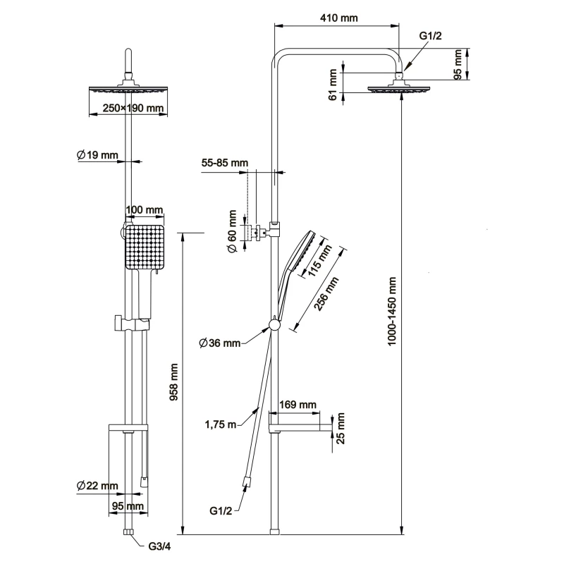 Душевой шланг, Душевая лейка, Держатель для душевой лейки, Верхний душ, Кронштейн, Мыльница, Штанга душевая