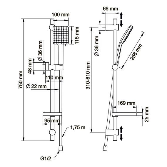Душевой шланг, Душевая лейка, Держатель для душевой лейки, Мыльница, Штанга душевая