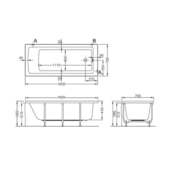 Акриловая ванна 160x70 см Vitra Neon 52520001000