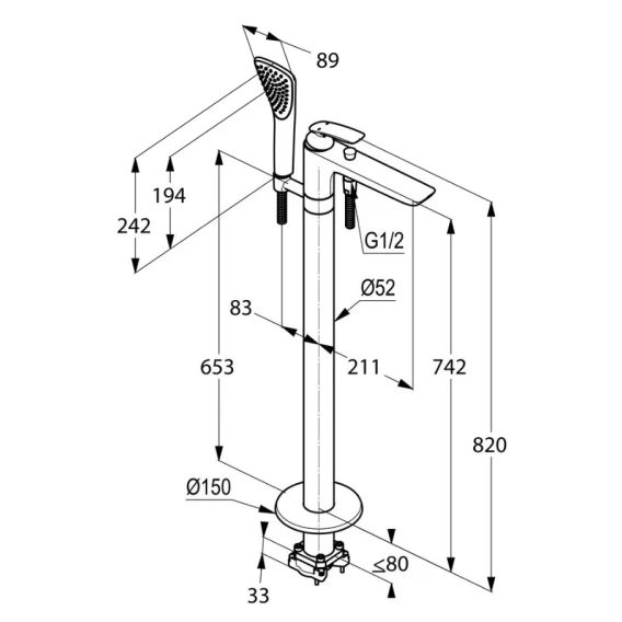 Смеситель напольный для ванны Kludi Balance White 525909175