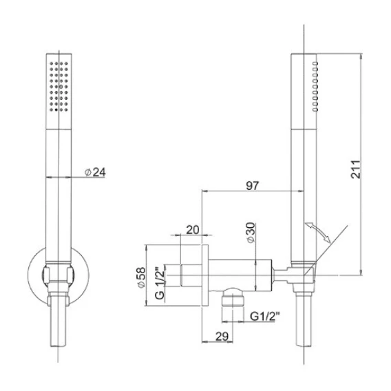 Душевой шланг, Душевая лейка, Подключение для душевого шланга с держателем