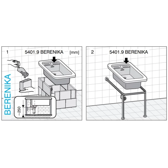 Для установки ванночки необходимо предусмотреть основание (см. инструкцию по установке).Эта модель оборудована встроенной системой слива-перелива, предотвращающей переливание воды через край чаши (излишек воды отводится в канализацию через сливное отверстие).В комплект поставки входит только керамическая чаша Berenika, отдельно приобретается смеситель, сифон и пробка.