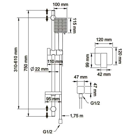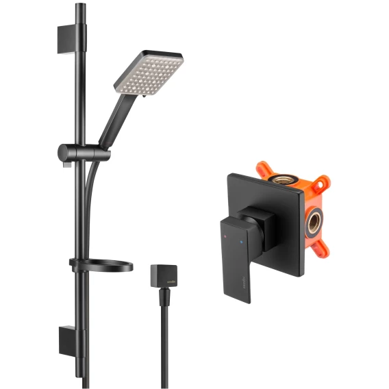 Душевой шланг, Душевая лейка, Держатель для душевой лейки, Подключение для душевого шланга, Скрытая монтажная часть, Мыльница, Штанга душевая