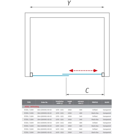 Душевая дверь Roltechnik Exclusive ECD2L/1300 564-130000L-05-02 прозрачное