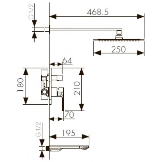 Аэратор, Верхний душ, Излив, Скрытая монтажная часть, Смеситель, Кронштейн