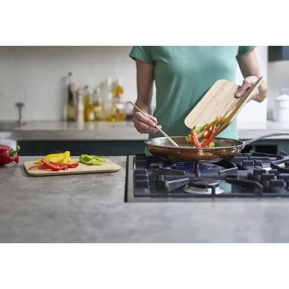 Знаменитая складная доска Chop2Pot, выполненная из высококачественного натурального бамбука в принципиально новом дизайне. В плоском состоянии она предоставляет надёжную поверхность для разделывания любых продуктов.В результате лёгкого сжатия по краям доска аккуратно складывается, образуя удобный совок, который позволит аккуратно переложить нарезанные ингредиенты в нужную ёмкость. Нескользящие силиконовые ножки обеспечивают неподвижность рабочей поверхности.Рекомендуется периодически смазывать доску минеральным маслом, чтобы продлить срок эксплуатации.