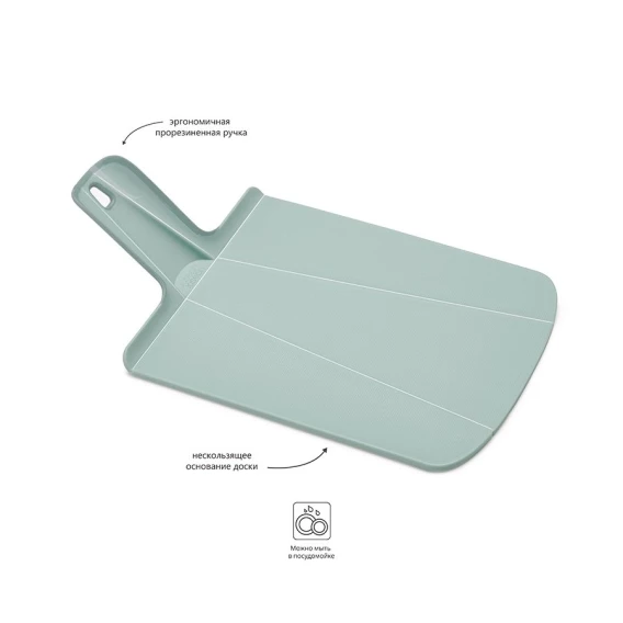 Знаменитая складная доска Chop2Pot Plus теперь даже лучше! Теперь с покрытием, которое защитит ваши ножи от повреждений. Ручка с прорезиненными концами создает максимальный комфорт при использовании. Всем знакомо, как неудобно сыпать порезанные овощи в кастрюлю – вы обязательно растеряете кусочки. Но с этим приспособлением вы одним движением превратите разделочную доску в удобный "совок", и все нарезанные продукты попадут прямо по назначению!Можно мыть в посудомоечной машине.