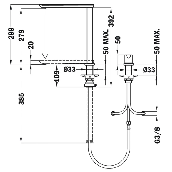 Смеситель для раковины без донного клапана Remer Energy EY12BO