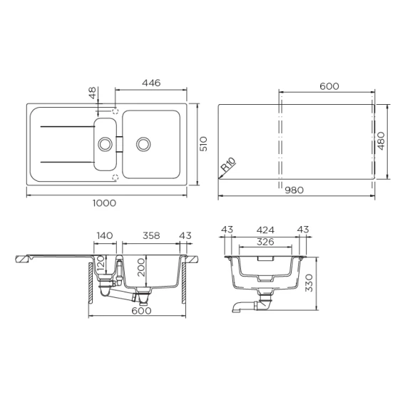 • сифон с возможностью подключения посудомоечной или стиральной машины