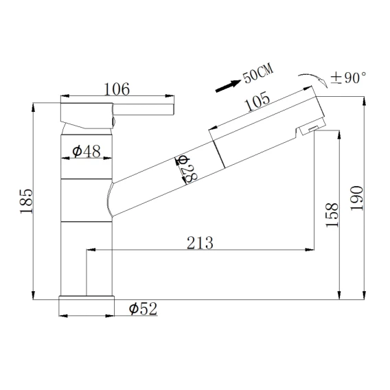 Крепление, Аэратор, Гибкая подводка, Душевой шланг, Душевая лейка