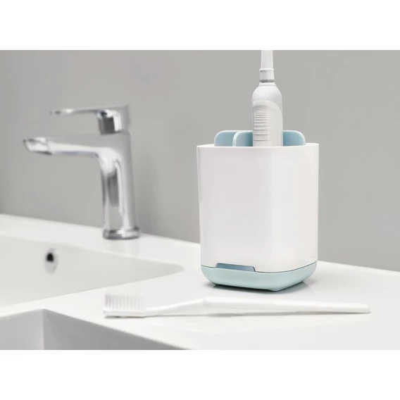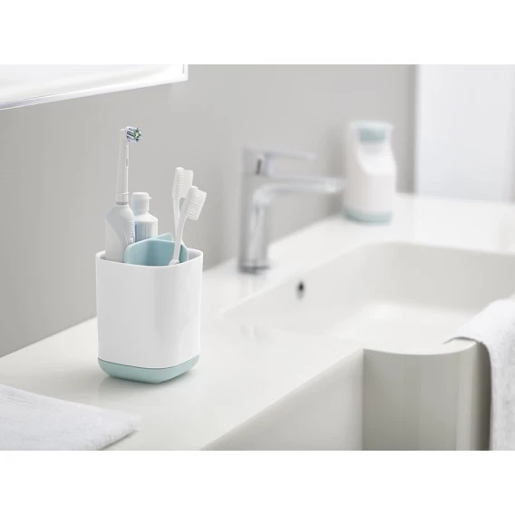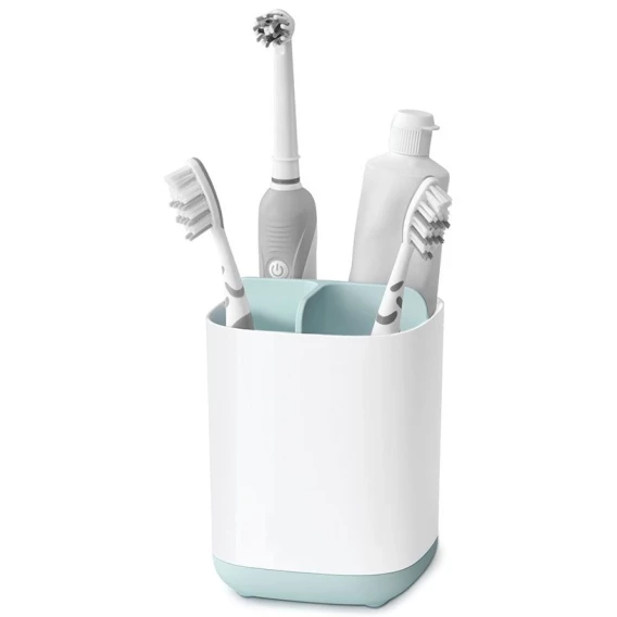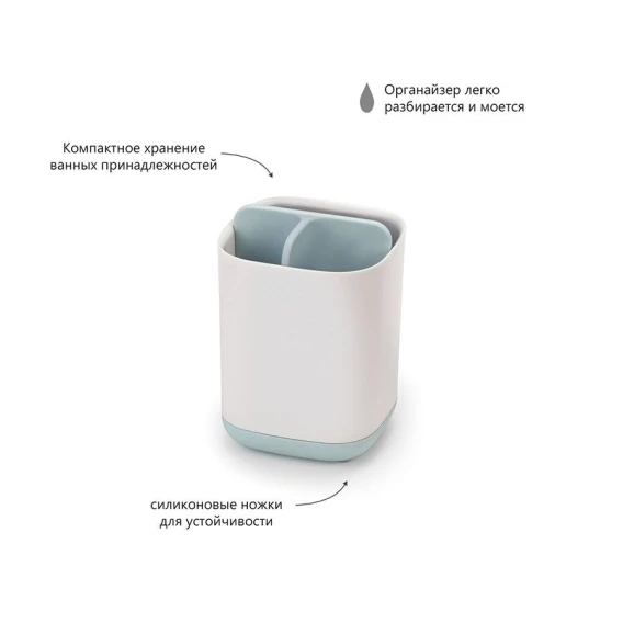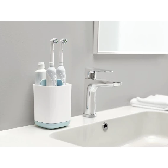 Конструкция и дизайн органайзера делают его универсальным контейнером для хранения всех предметов гигиены полости рта. Теперь все зубные щетки и тюбики с пастой вы можете хранить в одном месте, и они всегда будут под рукой.Органайзер предусмотрен также для хранения электрических зубных щеток, которые, как правило, занимают дополнительное место в ванной. Теперь можно эффективнее использовать пространство ванной комнаты и поддерживать все в чистоте и порядке.В органайзере есть вентиляционные отверстия, позволяющие предметам быстро сохнуть. В контейнере не скапливаются капли влаги, он остается сухим и сохраняет все предметы в прекрасном состоянии. Больше не нужно прилагать дополнительных усилий на протирание предметов после их использования. Сам органайзер очень легко разбирается и моется, поэтому уход за ним не займет много времени.На дне органайзера есть специальные силиконовые ножки. Этот материал не скользит по гладким поверхностям, что придает органайзеру дополнительную устойчивость.Ванная — одна из наиболее сложных для уборки комнат. Здесь вопрос экономии места особенно актуален. Для создания новых аксессуаров дизайнеры Joseph Joseph руководствовались принципами рационального использования пространства, эргономичностью и удобством сортировки.