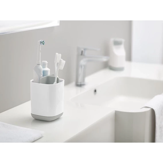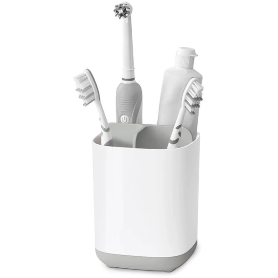 Конструкция и дизайн органайзера делают его универсальным контейнером для хранения всех предметов гигиены полости рта. Теперь все зубные щетки и тюбики с пастой вы можете хранить в одном месте, и они всегда будут под рукой.Органайзер предусмотрен также для хранения электрических зубных щеток, которые, как правило, занимают дополнительное место в ванной. Теперь можно эффективнее использовать пространство ванной комнаты и поддерживать все в чистоте и порядке.В органайзере есть вентиляционные отверстия, позволяющие предметам быстро сохнуть. В контейнере не скапливаются капли влаги, он остается сухим и сохраняет все предметы в прекрасном состоянии. Больше не нужно прилагать дополнительных усилий на протирание предметов после их использования. Сам органайзер очень легко разбирается и моется, поэтому уход за ним не займет много времени.На дне органайзера есть специальные силиконовые ножки. Этот материал не скользит по гладким поверхностям, что придает органайзеру дополнительную устойчивость.Ванная — одна из наиболее сложных для уборки комнат. Здесь вопрос экономии места особенно актуален. Для создания новых аксессуаров дизайнеры Joseph Joseph руководствовались принципами рационального использования пространства, эргономичностью и удобством сортировки.