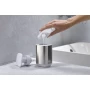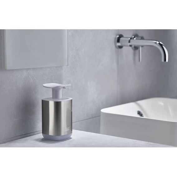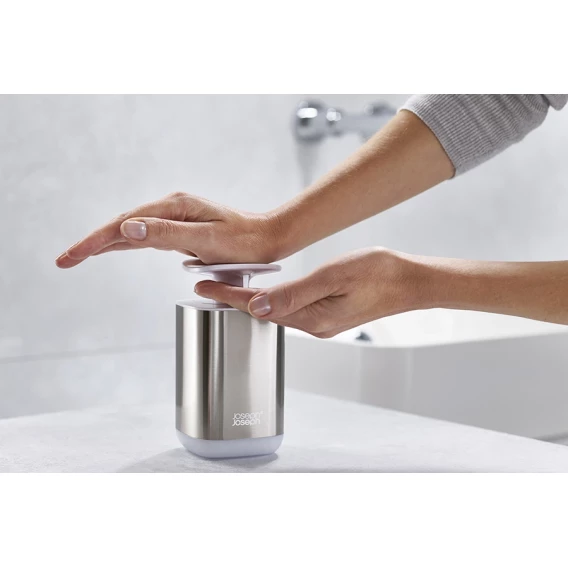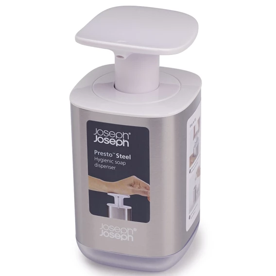 Новый практичный диспенсер для жидкого мыла Presto Steel станет изысканным дополнением любой ванной комнаты. Особенность модели – стильная отделка из нержавеющей стали. Аксессуар имеет эргономичную изогнутую головку насоса для простого нажатия запястьем, когда ваши руки грязные. В пластиковом флаконе предусмотрено прозрачное окно для удобного контроля остатка мыла. Благодаря нескользящему основанию аксессуар более устойчив на гладких поверхностях.Объем: 350 мл