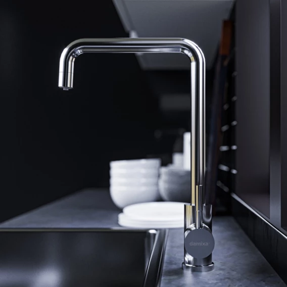 Кухонный смеситель Damixa со встроенным каналом для питьевой воды успешно совмещает в себе два в одном. Благодаря прогрессивной технологии при вращении ручки на 90 градусов вы можете наслаждаться чистой водой из фильтра.