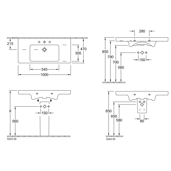 Раковина 100x47 см Villeroy & Boch Subway 2.0 7175A001