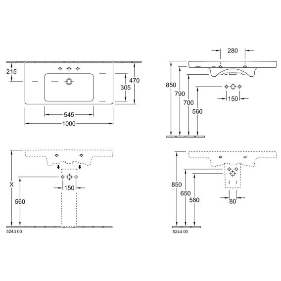 Раковина 100x47 см Villeroy & Boch Subway 2.0 7175A0R1