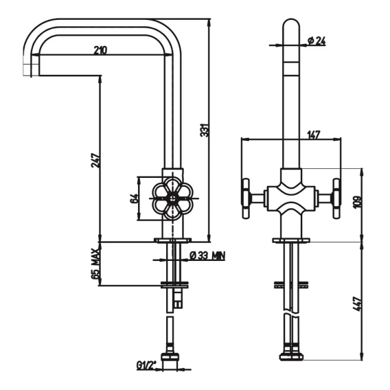 Высота излива 24.7 см