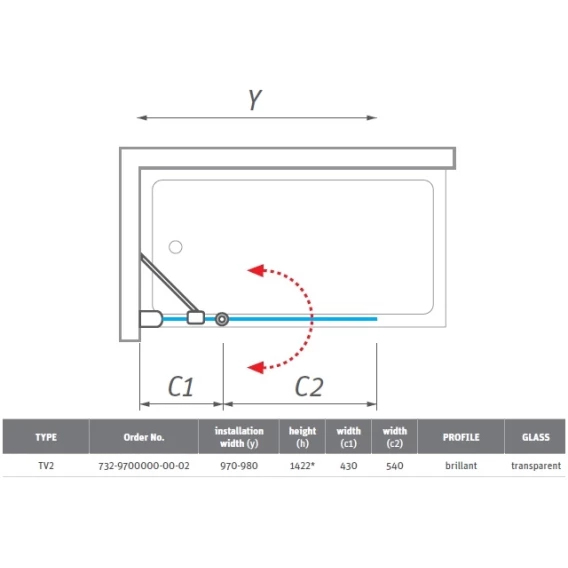 Шторка для ванны Roltechnik TV2 732-9700000-00-02 прозрачное