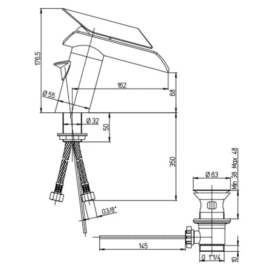 Смеситель для раковины без донного клапана Paini Bios 05CR205LMKM