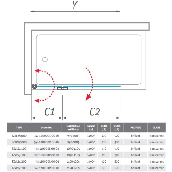 Шторка для ванны Roltechnik TZVL2/1100 742-110000L-00-02 прозрачное