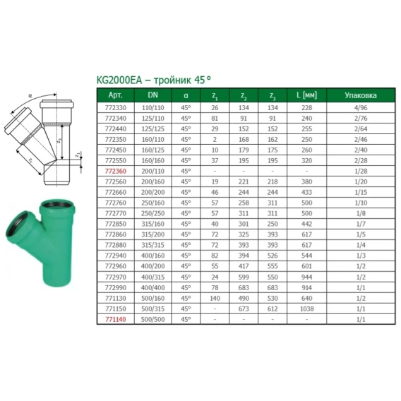 Тройник 500 х 160 х 45° Ostendorf KG2000EA 771130