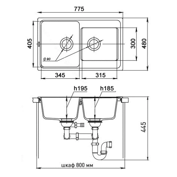Кухонная мойка Ewigstein антрацит Elegant 80D