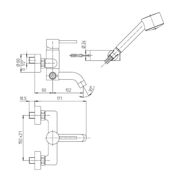 Аэратор, Металлическая розетка, Эксцентрики, Душевой шланг, Душевая лейка, Держатель для душевой лейки