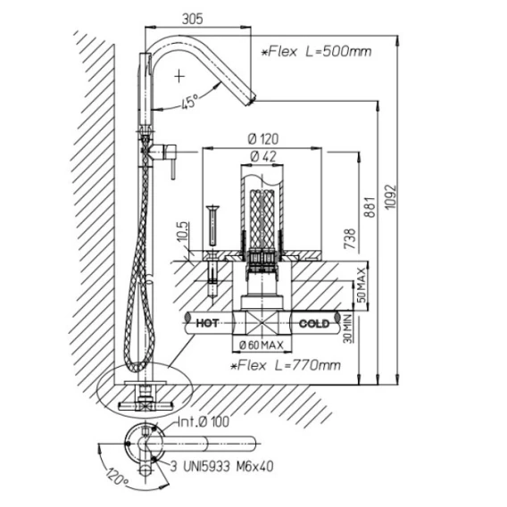 Аэратор, Душевой шланг, Душевая лейка, Держатель для душевой лейки, Скрытая монтажная часть