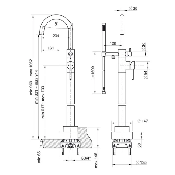 Смеситель напольный для ванны Paini Cox 78CR136LM