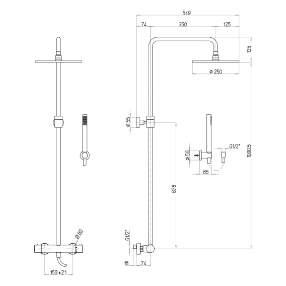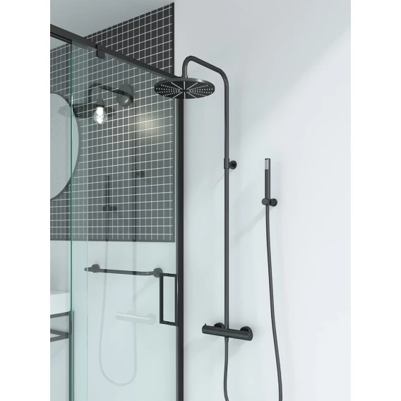 Металлическая розетка, Эксцентрики, Душевой шланг, Душевая лейка, Держатель для душевой лейки, Верхний душ, Кронштейн, Штанга душевая, Термостат