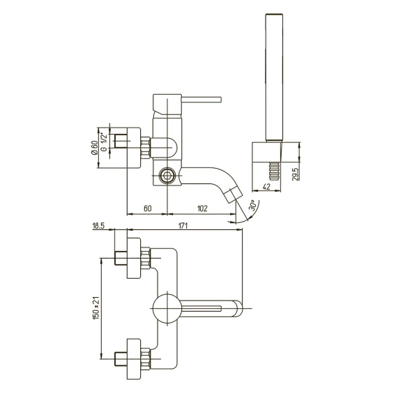 Смеситель для душа Ravak Puri PU 032.20/150 X070187 черный матовый