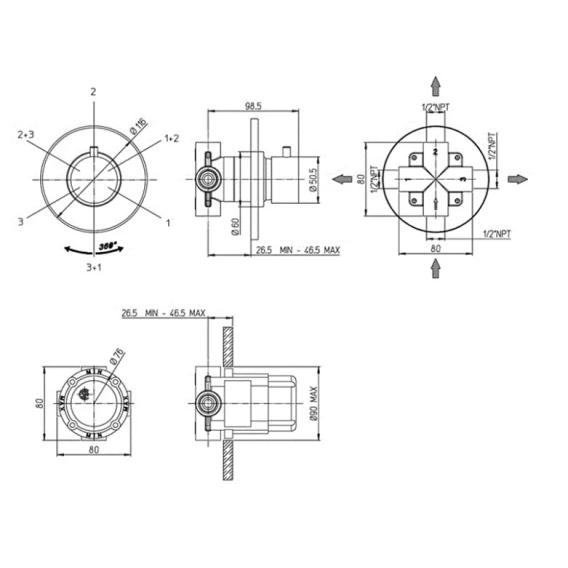 Манометр радиальный 1/2" х 80/16 Bar Watts F+R200 10007794