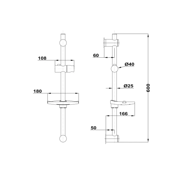 Душевой шланг, Душевая лейка, Держатель для душевой лейки, Мыльница, Штанга душевая