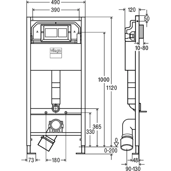 Инсталляция для унитаза модель 8524.14 Viega Prevista Dry Visign for Style 21 792596 с кнопкой смыва, хром