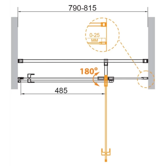 Габариты с диапазоном регулировок, мм: (780-805)x1950