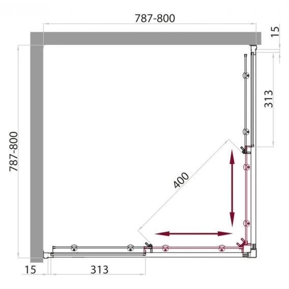 Габариты с диапазоном регулировок, мм: (787-800)x(787-800)x2350