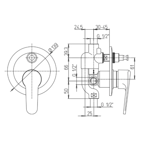 Смеситель для душа встраиваемый без переключателя Ravak Classic CL 062.00